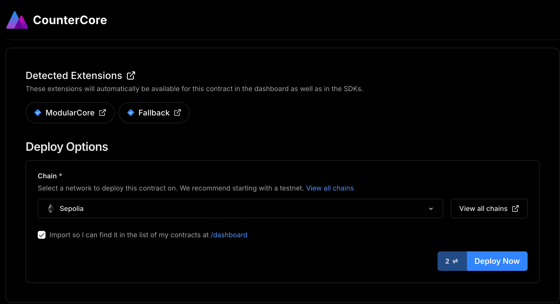 of the contract and click "Deploy Now".Then, choose the Sepolia chain and click "Deploy Now".